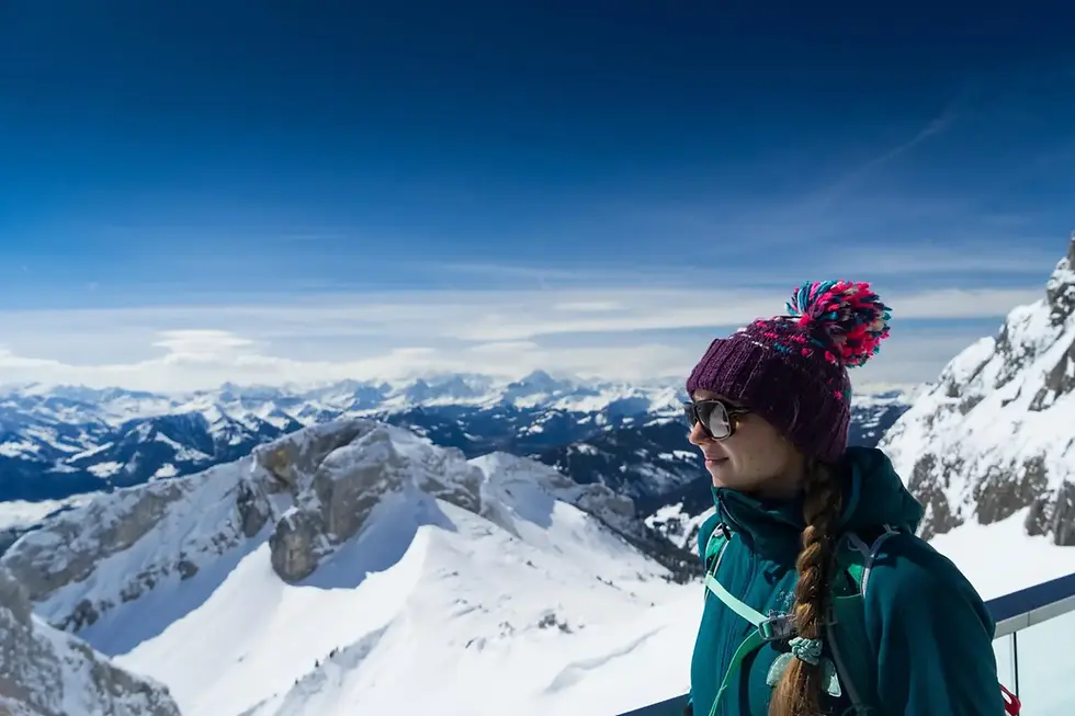 Once the ticket is scanned and the doors close, the ascent begins. About half an hour later, you arrive at Pilatus. At the top, you are welcomed by exactly what you might expect in Switzerland: souvenir shops, buffet-style food, and carefully polished infrastructure. There is also a proper hotel here, Pilatus Kulm Hotel, with a large bar and an elegant restaurant. So you can either sit down for a more refined meal in a grand interior that still carries some Belle Époque atmosphere, or simply grab something casual and stretch out on a deckchair with a beer.